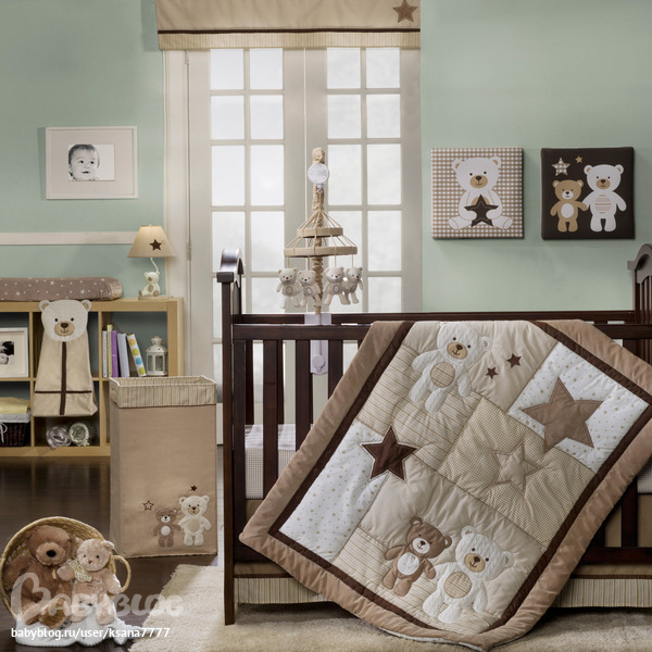 Я бы не советовала прям очень много делать медведей :) Если бордюр, то да, а так чтобы все стены, то это будет слишком :)Советую, если комната будет в очень коричневых тонах, то они хорошо будут сочетаться, с бежевым, молочным, небесно голубым...можно белое...