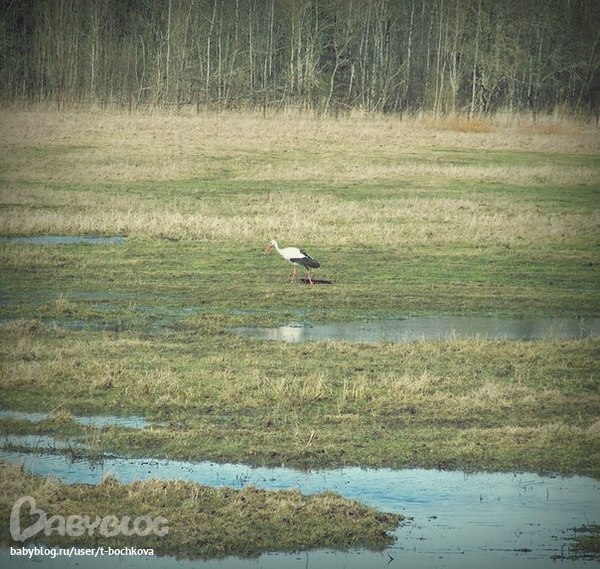 Так у него обеденный перерыв:))) Они летом в этой леваде с лошадками вместе пасуться - видимо, там лягушки вкусные...