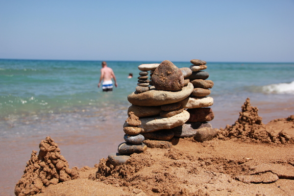 Это второй день на море, мой любимый фотик был еще жив, а муж соорудил на пляже вот такую башенку)))