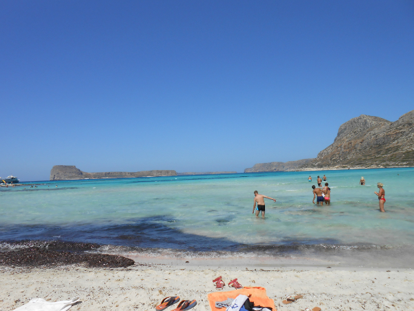 Если обплыть остров Грамвуса то попадаешь в бухту Баллос, где чистейшая вода и разнцветный, от белого до розового, песок...