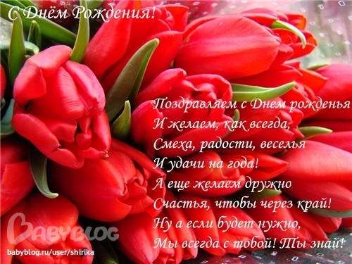 С ДНЕМ РОЖДЕНИЯ!ПОЗДРАВЛЯЮ ОТ ВСЕЙ ДУШИ,ПУСТЬ ВСЕ ТВОИ МЕЧТЫ СБЫВАЮТСЯ В ЭТОТ ПРЕКРАСНЫЙ ДЕНЬ