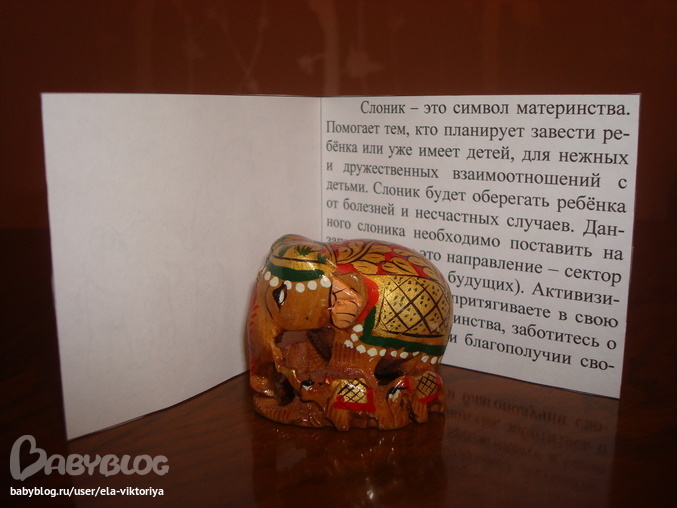 Ой, пардон. Не подумала. Исправляюсь - "данного слоника необходимо поставить на западе (так как это направление -сектор детей (в том числе будущих). Активизируя это сектор, вы притягиваете в свою жизнь счастье материнства, заботитесь о здоровье, развитиии и благополучии своих детей!"