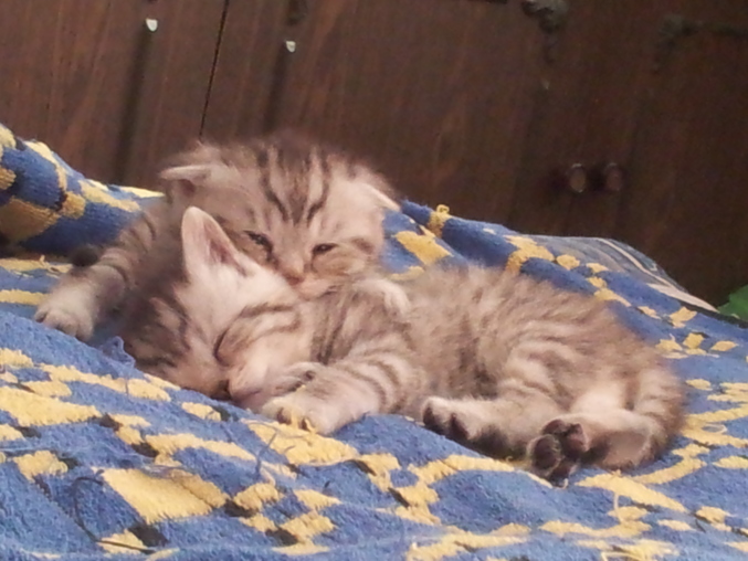 какие прелести... лапочки маленькие.. а эти две фотки где во два котенка.. так прикольно.. одинаковые котятки только ушки разные.. так интересно получилось))супер котятки... у меня тоже когда то такой был.. зато щас ходит огромный котик))