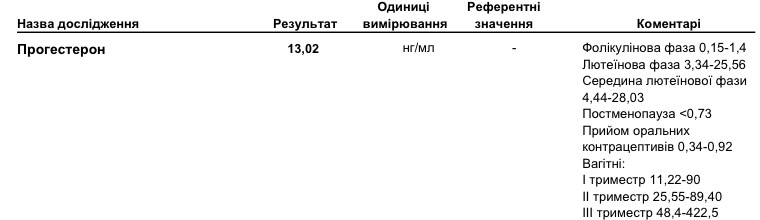 100 это в нмоль/л нг/мл х 3,18 ==>нмоль/л .у вас 13,02 х 3,18 = 41,4 нмоль/лэто беременные нормы, но я бы утрожестан добавила не 100, а 200 хотя бып.с. он будет постепенно расти, еще же только 7 ДПП