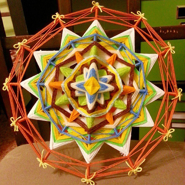 Вот такая вот мандала у меня получилась) первый раз сплела 12-ти лучевую. По-моему получилось мило) Думала о будущем ребенке, когда плела. И судя по бантикам (что для меня совершенно не свойственно), наверное, у нас будет девочка)))