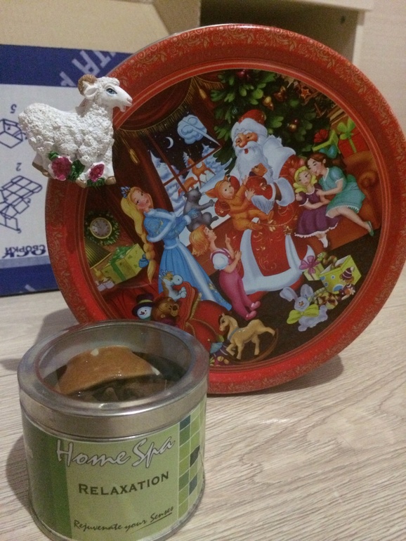 3.печньки в красивой коробочке, а на ней магнитик символ года-козочка))и ароматные конусы, такие пахучие , ароматные, будемрелаксировать;)