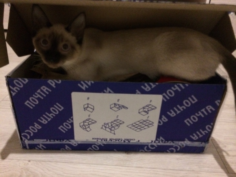 Пришел муж, стали открывать коробку , а тут наша Милка заскочила в коробку, и не давала нам рассмотреть что там )