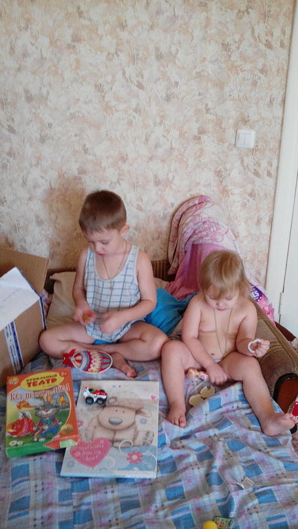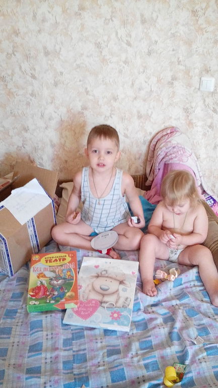 Спасибо тебе феечка наша Настенька за такие подарки! Детишки очень очень счастливы!!!!! В последний месяц я вообще не рыба не мясо с токсикозом, внимания им меньше, а тут такой сюрприз!!!!! Спасибо огромное, и за открыточку!!!!