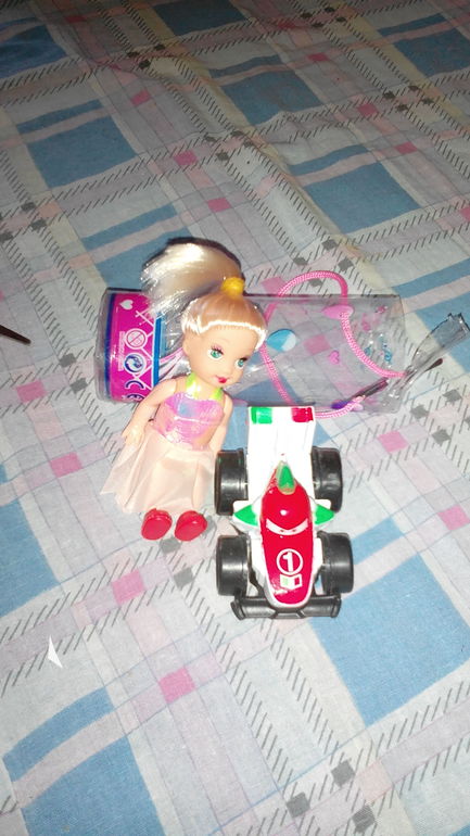 Смотрят в коробку и прям как чувствовали разобрали все подарки))) Полине досталась кукла завернутая так празднично в канфету)))) а Паше машинка тоже красиво запакована, с каким удовольствием они их распаковывали не объяснить словами, вот что получилось))