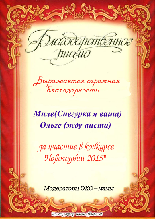 Дорогие участницы, в нашем конкурсе "Новогодний - 2015" была еще номинация ЭКО-Дед Мороз года! К сожалению фотографий для этой номинации пришло всего две от