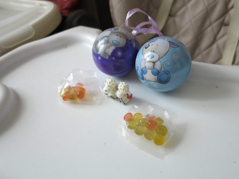 Тамарочка, спасибо огромное за такие отличные подарочки, и все в двойном количестве: плюшевые, очень мягкие песики, дети в них зарылись сразу по уши, замечательные книжки, которые вызвали мгновенный интерес)) дети и сейчас слушают стихи из них и, конечно же, с удовольствием грызут)), нвогодние панно-елочки, праздничные салфетки для стола, елочные шары с сюрпризом и мармеладкой и грызунки на прищепках, которые у нас стали просто хитом.