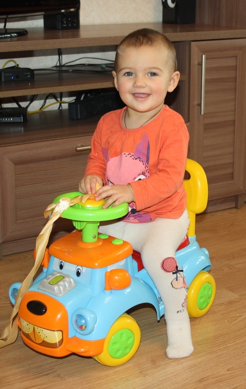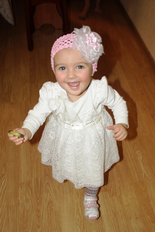 скажу одно -шило у неё глубоко в сладкой попке! Ей нужно быть везде! Как это что-то без неё происходит!? Иногда думаю, если бы мультик "Маша и медведь" вышел недавно, то я была бы уверена, что автор где-то увидел мою Светочку и срисовал всё с неё!))) Пошла она чуть раньше, чем в 9 месяцев, первое отчетливое и осознанное "мама" выдала в 7 месяцев, чем растрогала меня до слёз))) да и других умелок масса! Прикольно, что сейчас всё понимает: когда прошу что-то принести, например, её тапочки, или пульт от телевизора, знает, где что лежит, и несёт)) или еще смешнее, когда я смма что-то не могу дома найти, я спрашиваю у неё, где, мол, Света, это лежит. И, видимо, она очень внимательная, она меня либо приводит на это место, либо приносит сама! Я так балдею от этих моментов! Научилась на ночь выключать свет)) у нас ритуал: искупались, оделись, говорю: "Светочка, закрывай дверь и выключай свет!" Идёт и делает то и другое))) такая корка!)) "помогает" мне по дому: подметает, полы моет)) пыль протрёт)) одна пррблема сейчас -фиг накормишь! бегаю по дому за ней, чтобы накормить, стульчик перестала признавать совсем!(( попробовала взрослую еду, и всё! Теперь детское нам бееееее! Ну, говорить можно много... лучше я вам покажу это шилопопие))) вот такие мы