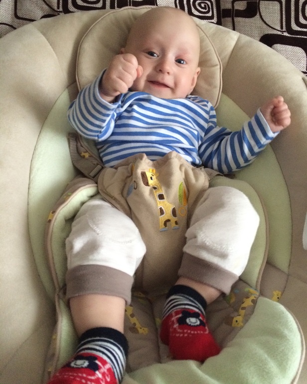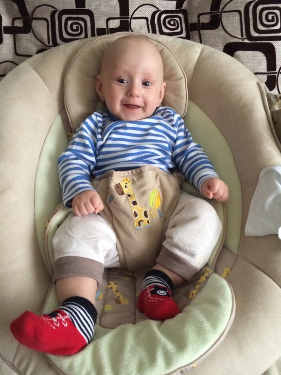 Вырос то как;))) у меня Степан очень редко улыбается, а Тема с первого месяца такой улыбчивый? Где вы купили тельняшку, наш папа сыночке хочет тельняшку, потому как он десантник, но пока нигде не нашли.