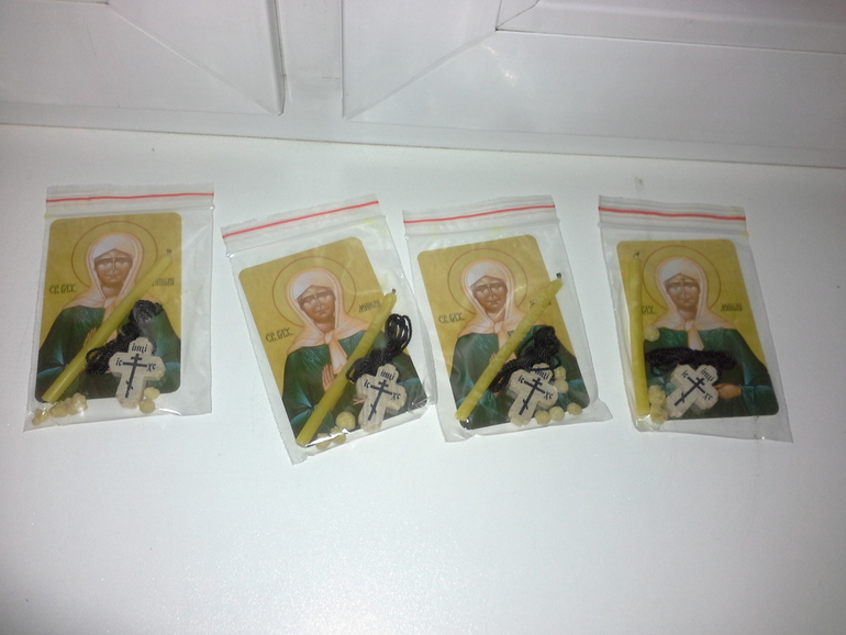 4 набора от Матронушки из Покровского монастыря,девочки регионы понимаю что многие не могут приехать к Матроне хочу хоть кому то отправить наборчики на удачу очень надеюсь что они помогут Вам в нашем нелегком деле.Вышлю почтой,адрес напишите в личку.
