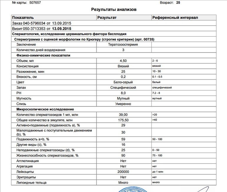 У нас 96% патологические формы, 4% -соответственно нормальных. Диагноз:нормоспермия.С 1 раза вышло