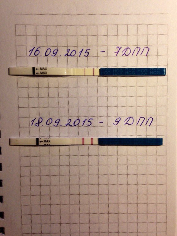 Второй тест сделала на 9ДПП - заполосатился он уже гораздо быстрее и полоски почти сравнялись по цвету :))))