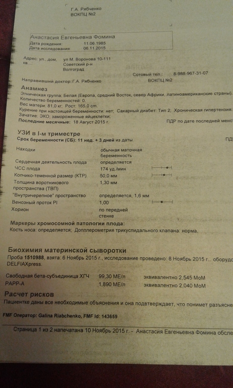 Смотри вторую стр. Все риски очень низкие. Значит точно нет никаких генетических нарушений. Все отлично!!! МОМ в нужных пределах. Все абсолютно хорошо.