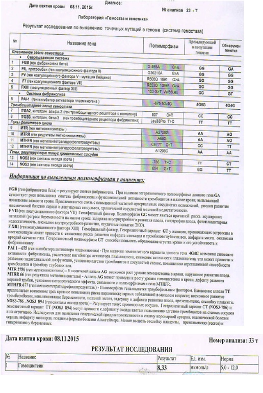 Гемостаз (+ИГ и ЛИТы)Всем Привет! Знающие в этой теме помогите разобраться в показателях точечных мутаций в геноме и гомоцистеине