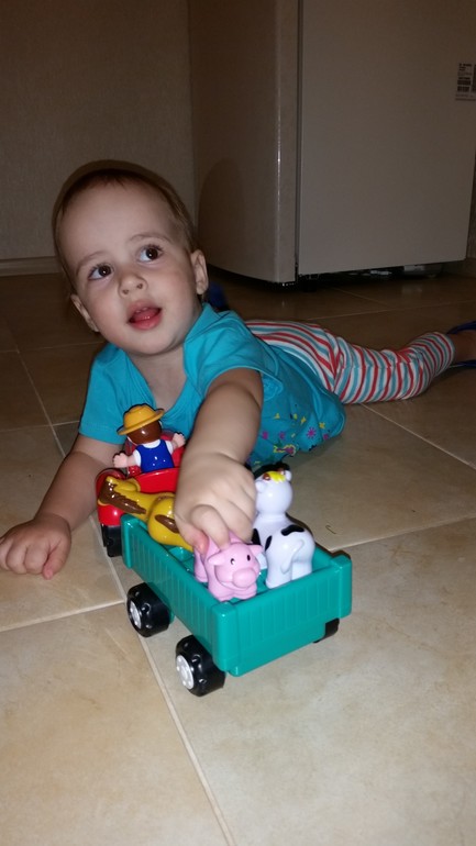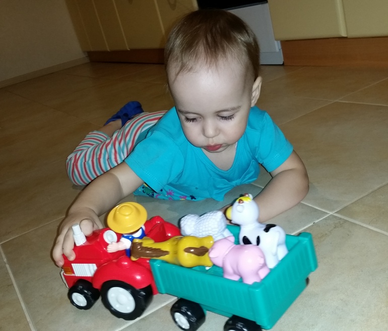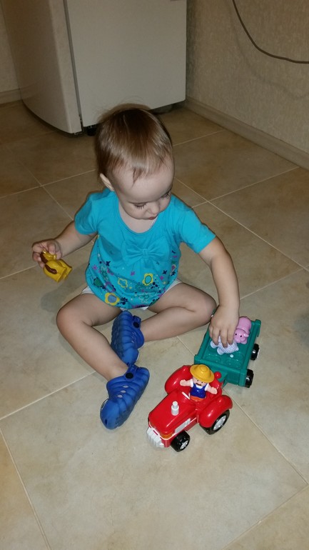 Потом я вытащила тягач из коробки, сняла бирки и дочка начала играть. Да так заигралась, что дневного сна у нас сегодня не было))):