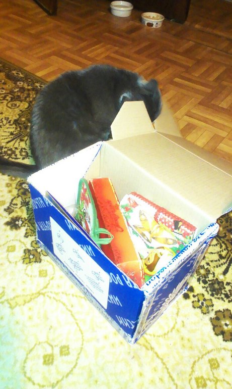 Моя кошка как всегда, любопытствовала и терлась о коробочку ))