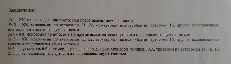 У нас тоже был Пгд на все хромосомы, но описание понятней. Кажется, что здоровый эмбрион только первая девочка. У остальных есть отклонения в хромосомном наборе.