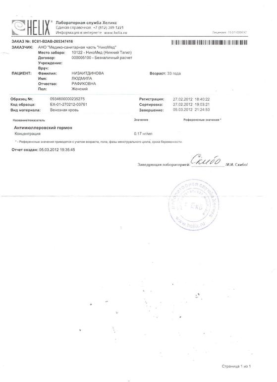 Гормоны (АМГ,Прогестерон,Эстрадиол,ФСГ и т.д)Вообщем когда я первый раз пришла в больницу в 2012 году ,АМГ у меня был 0,17,выросло на пурегоне и менопуре немного яйцеклеток,ну вообщем вся история в дневнике,в том году амг тоже был 0,17 и фсг уже 11,а в этом году АМГ 1,25 такое может быть?Но я сдавала на 8 день,а не не 2-3 как мне назначали,я в шоке,фоликуллов не много по узи всего 3 в левом,а правый не визуализируется.Вот такие дела.Не могу загрузить файл в пдф,сейчас скан сделаю,надо как то дату фотошопить,а я не могу блин,раньше в кореле открывала и ноль проблем,ладно попробую,как нибудь. Радоваться надо,а я в шоке,пила ДЭГА год назад,сейчас