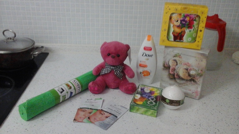 Спасибо, за мишку, очень мило что вы и про Дашулю не забыли. Мишка приятный на ощупь.