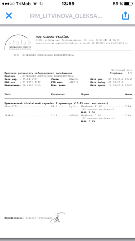 Я позвонила, результат ей ещё не пришёл, только мне прислали. Сказала пойдет на рецепку и посмотрит мои анализы. Только что позвонила мне. Сказала что эти цыфры нормальные. Я не знаю я переживаю. Пойду к генетику пусть обьснит мне все.