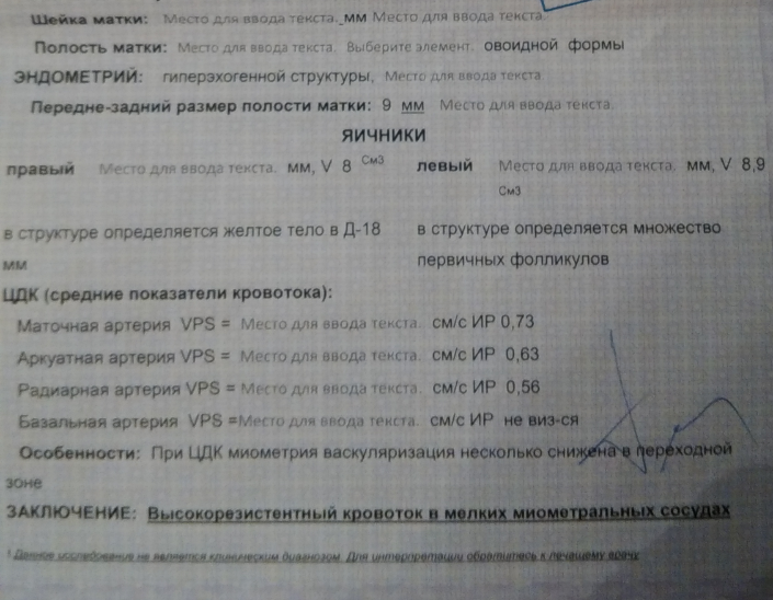 еще у вас нет спиральных аретерий (может это специфика лабы), именно они и базальные самые важные для имплантации - то есть в более крупных сосудах у вас все ок, а мелкие, которые как раз и питают эмбрион - не визуализируются. Но это может быть из за аппарата узи, то есть нужно точно понимать что этот врач спец и ранее у него у девочек эти артерии визуализировались.