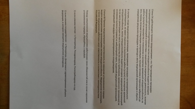 Сегодня в ЭКО-клинике мне дали распечатку с информацией о соответствующих приказах и куда обращаться в дальнейшем, в случае прецедентов в ЖК.