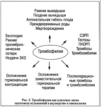 На сегодняшний день под антифосфолипидным синдромом (АФС) понимают симптомокомплекс, сочетающий определенные клинические признаки и лабораторные данные: наличие антифосфолипидных антител в сочетании с артериальными и венозными тромбозами, синдромом потери плода, иммунной тромбоцитопенией и/или неврологическими расстройствами. - В последние годы стали рассматриваться и изучаться нетромботические эффекты тромбофилии в патогенезе акушерских осложнений еще на этапе имплантации плодного яйца и в раннюю эмбрионическую фазу. Имплантация, инвазия трофобласта и дальнейшее функционирование плаценты представляются многоступенчатыми процессами эндотелиально-гемостазиологических взаимодействий со сложной аутокринно-паракринной регуляцией, которые объективно нарушаются при тромботической тенденции и в случае генетических дефектов свертывания. Хотелось бы заметить, что беременность является состоянием, которое можно назвать своеобразным "экзаменом" на наличие скрытой приобретенной (АФС) или генетической тромбофилии, поскольку она сама сопровождается физиологической гиперкоагуляцией и способствует реализации скрытой тромбофилии не только в форме тромбозов и тромбофилий, но и типично акушерских осложнений.
