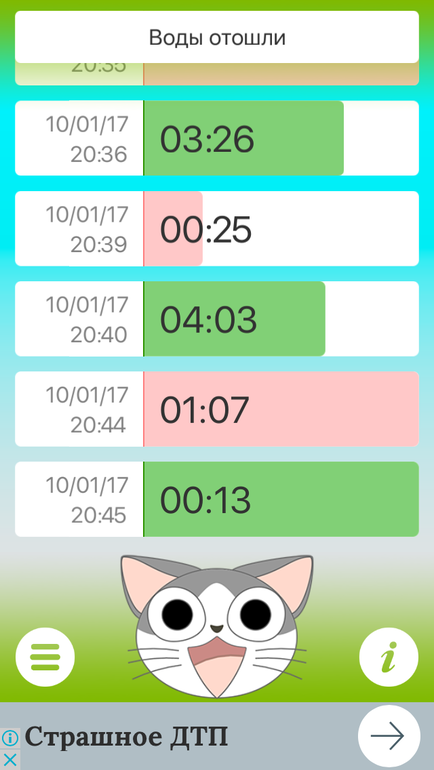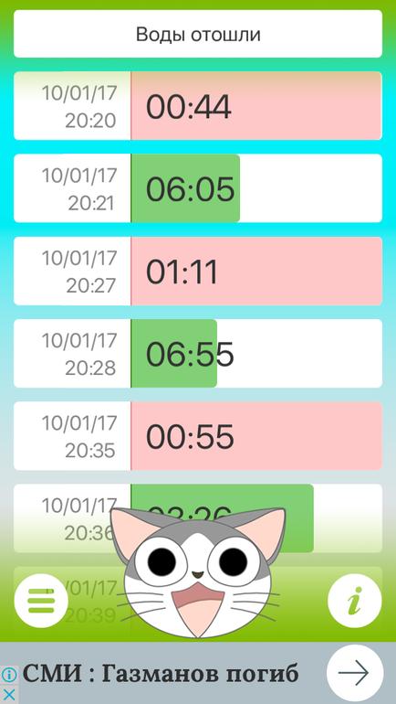 Ближе к восьми часам вечера у меня стал каменеть живот - даже лёжа, ничего при этом не делая... В начале девятого я решила по приколу включать счётчик схваток - весёлая киса там меня радовала.