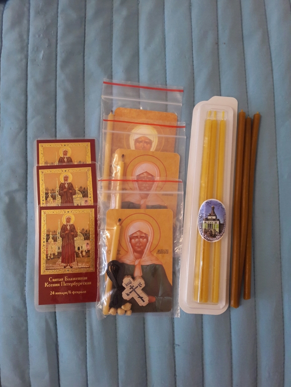Вышлю желающим наборчики, иконки, свечи, лепестки от мощей св.Матроны Московской и Ксении Петербуржской.