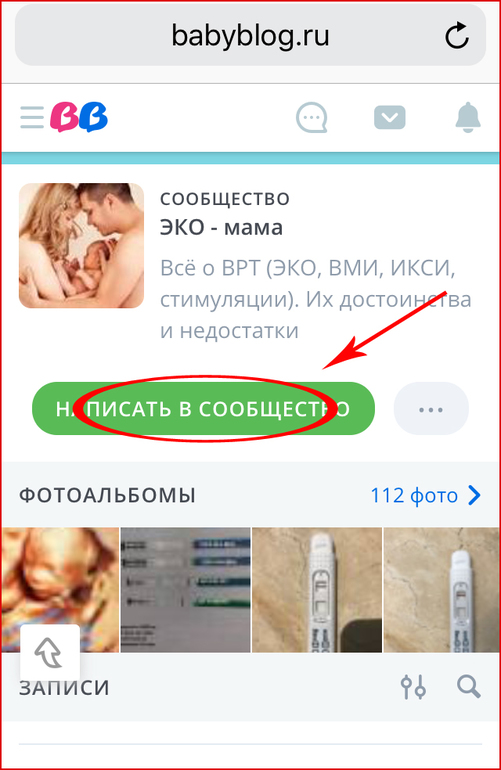 ШАГ 1: Нажимаем на значок "Написать в сообщество"