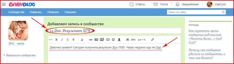 - Моя ЭКО история, мой путь к ЭКО- посты с историями девочек, которые уже прошли ЭКО. Как пришли к ЭКО, сам процесс и результат, т.е должна быть полноценная история, а не репортажный пост; Т.е. общее содержание поста должно быть: мне помогло эко, я родила и больше не буду делать протоколы или эко не помогло и буду усыновлять (или вообще ничего делать не буду больше).