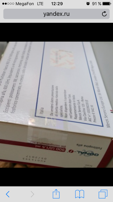 Начала стимуляцию 3 дня назад. Препараты приобретаю в клинике, так удобнее. Так вот, выдали мне ручку гонал ф 900, в коробке. Мало того, что срок годности стоит 09/2017, т.е. совсем пограничный, так сама коробка, в которой был шприц, вскрыта. Т.е. Когда приобретаешься в аптеке, коробка заклеена, как на фото, и на плёнке виднеется буква М. А мне выдали незаклеенную.