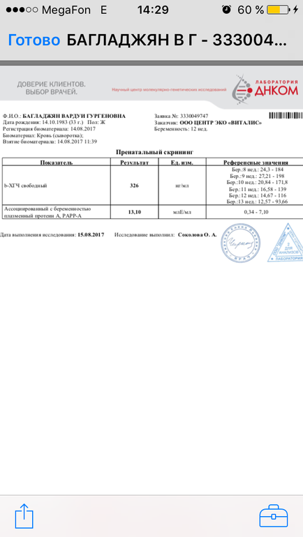 1 СКРИНИНГ . Пришли результаты!!!