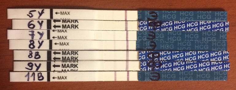 Дальше было ожидание и тесты, в этот раз я начала их делать аж с 4дпп, конечно он был отрицательным, а вот на 5дпп уже я разглядела полоску)