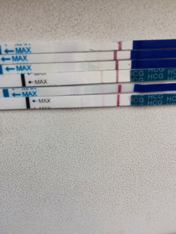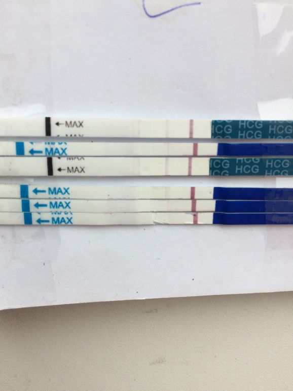 Убрала все лишние тесты,оставила только эвик. Нижний-вторник, средний спела, верхний сегодня. Все делала вечером. Верхний ещё мокрый.. полоска появилась сек через 5, потом начала проявляться. Завтра иду на хгч в любом случае,а там будет видно. По мне-динамики нет. Потом может скину когда высохнут все..