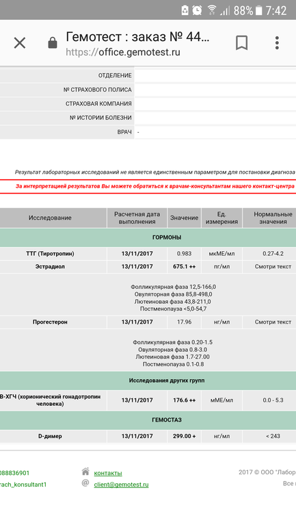 Д-димер вылез из норм, нужна поддержка крови Клексаном, прогестерон маловат, желательно добавить поддержку Утрожестаном.