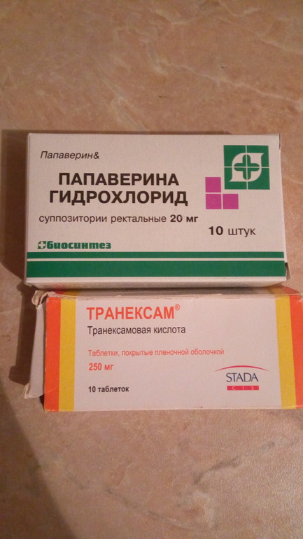 Свечи с папаверином - 7 шт.в коробочке, Транексам - осталась всего 1 таблетка, но выкидывать как-то жалко.
