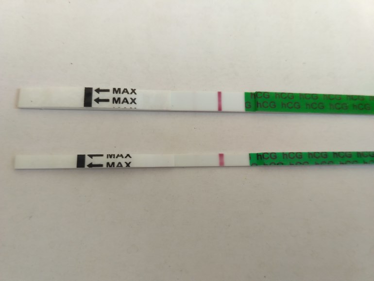 Лично я считаю что по тесту динамику нельзя отследить. Главное что она есть, а бледная или нет это уже не столь важно. Организм у всех разный и концентрация ХГЧ в моче тоже у всех разная