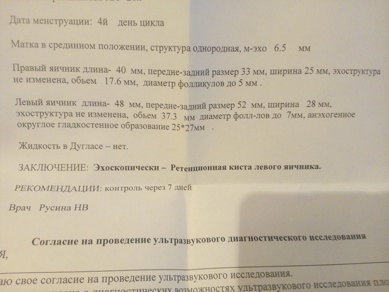 У меня тоже нашли кисту 27мм на левом яичнике....и меня не взяли в крио,сказали пропить 2нед .противозачаточные и на осмотр😟