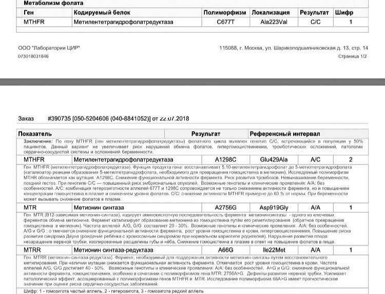 И на сколько я поняла из интернета - MTHFR означает, что фолька в виде кислоты у меня не усваивается и нужно пить фолаты + не плохо было бы сдать гомоцистеин?