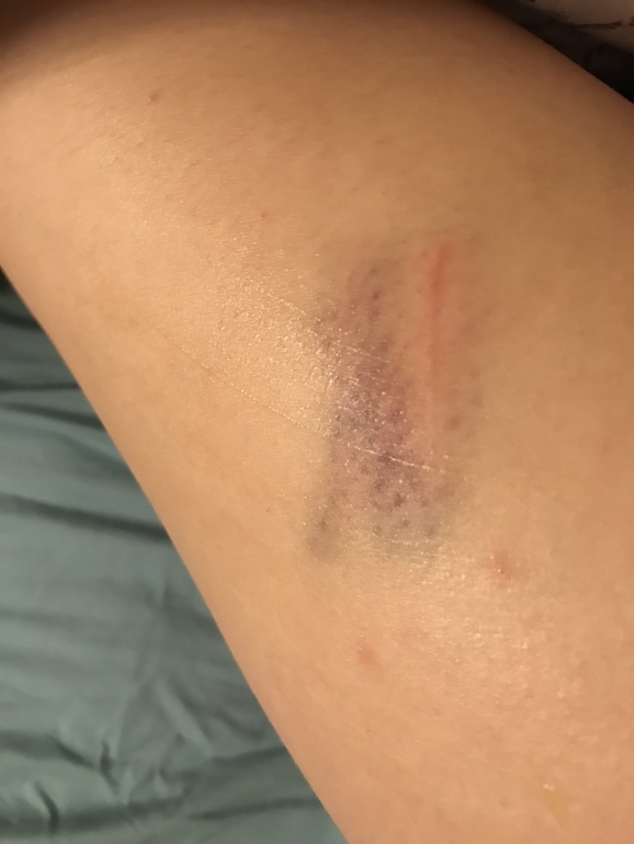 Образ жизни до, во время и после ЭКОДевочки, ну вот снова я) голова бедовая или 33 несчастья))) так меня бабушка в детстве называла) вчера вечером мы выехали домой из Москвы, ночью остановились в задонске(Липецкая область) по работе. Утром поработали и решили зайти в монастырь к Тихону задонскому, там нам повезло и открыли окошко к мощам, приложились, помолились. Зашли в церковную лавку и тут я не разминулась с двумя женщинами, они ушли от столкновения, а вот я нет... на моем пути встал стол.... как я об него ударилась, об угол бедром, аж звёздочки полетели... если бы не святое место, мата было бы не избежать. Потёрла, болит но терпимо. И вот часа через два смотрю на ногу а там синяк. Ну думаю мало мне синяка на животе)) и только сейчас дома я обнаружила, что на ноге гематома опухла и очень болит. Вот так этот протокол мой точно верх дном))