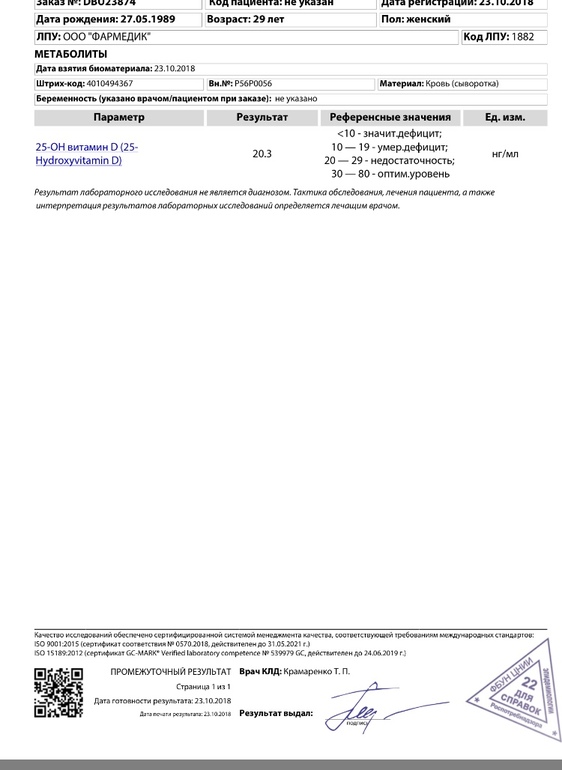 Анализы и процедуры. Помощь в расшифровке результатовДевочки я сдала анализ на витамин Д , пожалуйста посоветуйте с дозой ??
