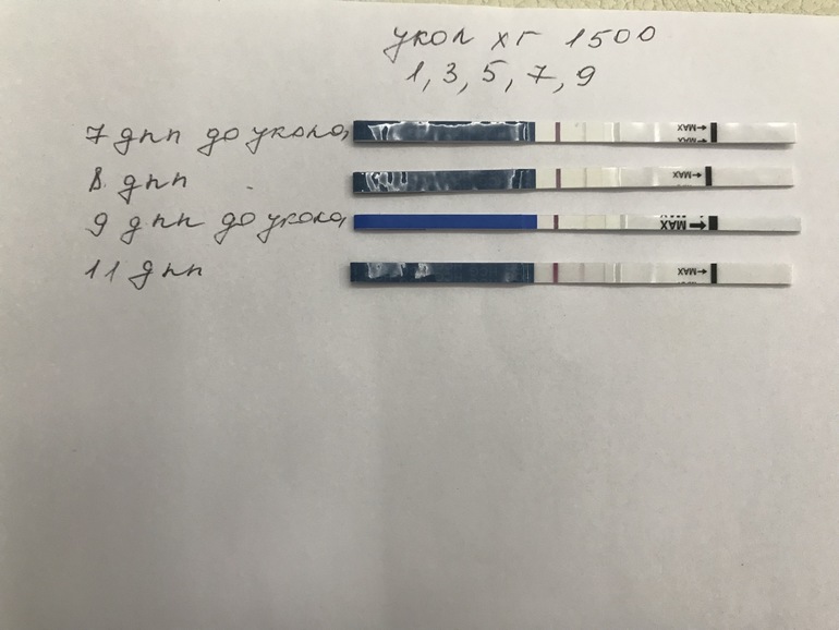 Я начинала укол с день переноса до 9 дпп. Делала через день. Первый раз 7 дпп делала тест. Всегда было полоска но после уколов полоска темнее. Сегодня сдала хг и узнаем какой результат.Каждый день пью 2,5-3 литра воды.