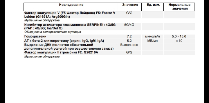 Гомоцистеин 7.2, мутации выявлена только паи в гетерозиготе. Я в этом просто полный ноль, не знаю на сколько это страшно. Гемостаз в беременность никто и не назначал, доходила так до 11 недель. Когда узнала что замер, брали кровь, все в норме, только фибриноген был слегка выше