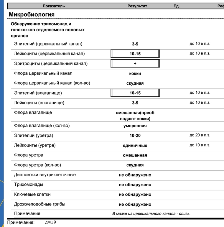 Хотя титры были в пределах нормы. Гинекологический мазок у меня был хороший. А у вас лейкоциты повышены.