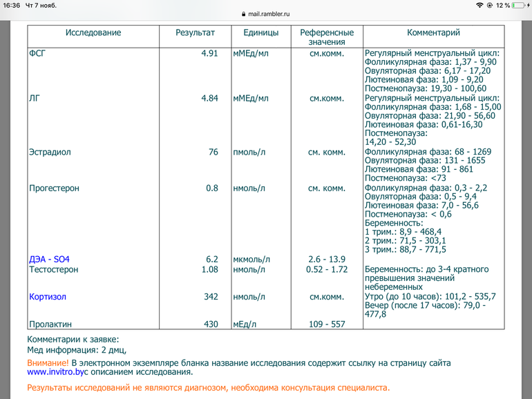 ФСГ должен быть выше ЛГ в 2.5 раза на начало цикла, остальное в пределах нормы